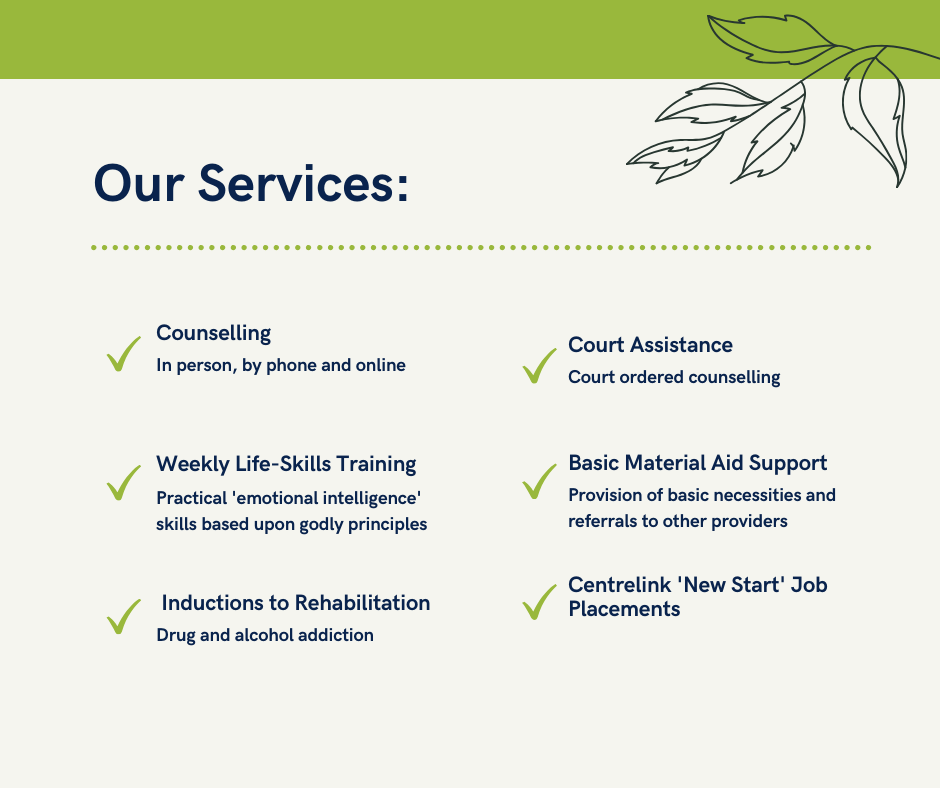 We’re a small organisation doing everything we can to help people get back on their feet and – more than that – reach their full potential in life. Here’s a few of our major services, and if you’d like to know more check out the links below or contact our friendly team today.